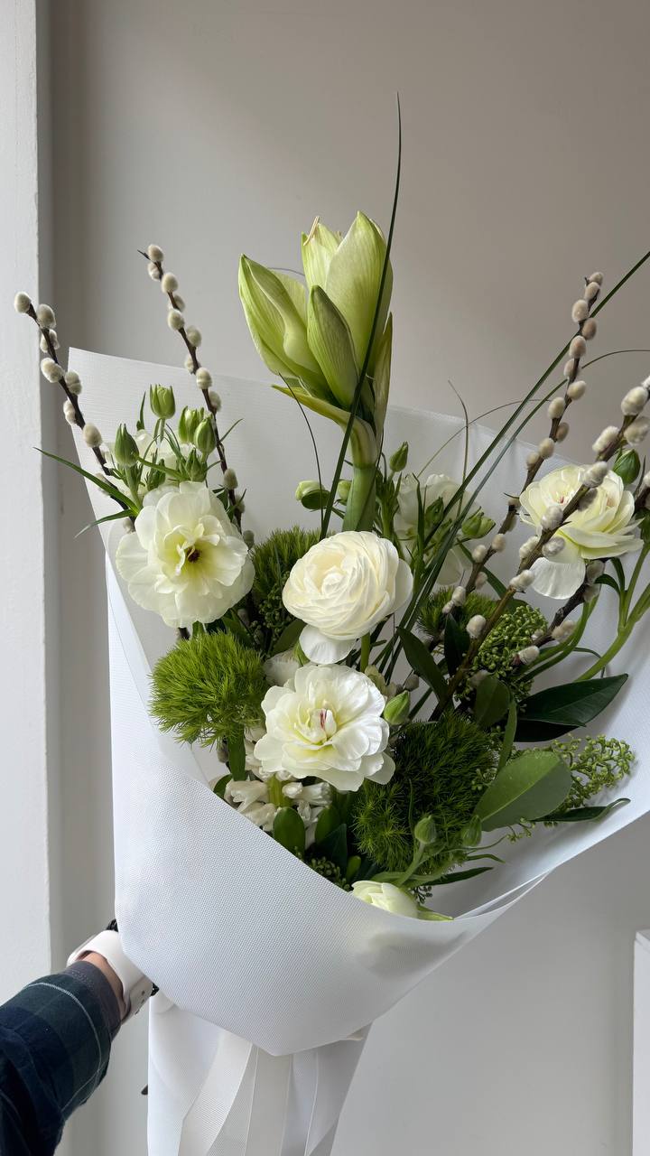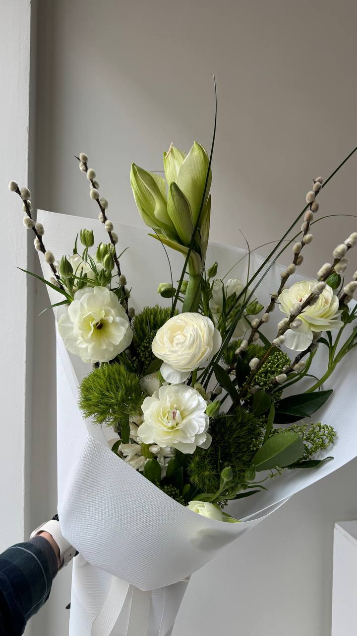 Ми створюємо унікальні букети з сезонних і екзотичних квітів під ваш привід. Букет може відрізнятися від фото, адже щотижня ми формуємо нові поєднання кольорів. У сезон використовуємо українські квіти.