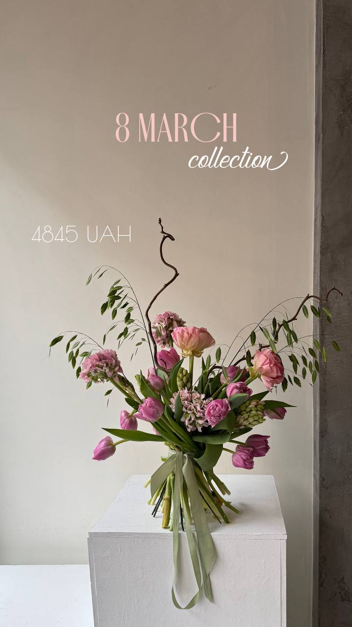 Ми створюємо унікальні букети з сезонних і екзотичних квітів під ваш привід. Букет може відрізнятися від фото, адже щотижня ми формуємо нові поєднання кольорів. У сезон використовуємо українські квіти.