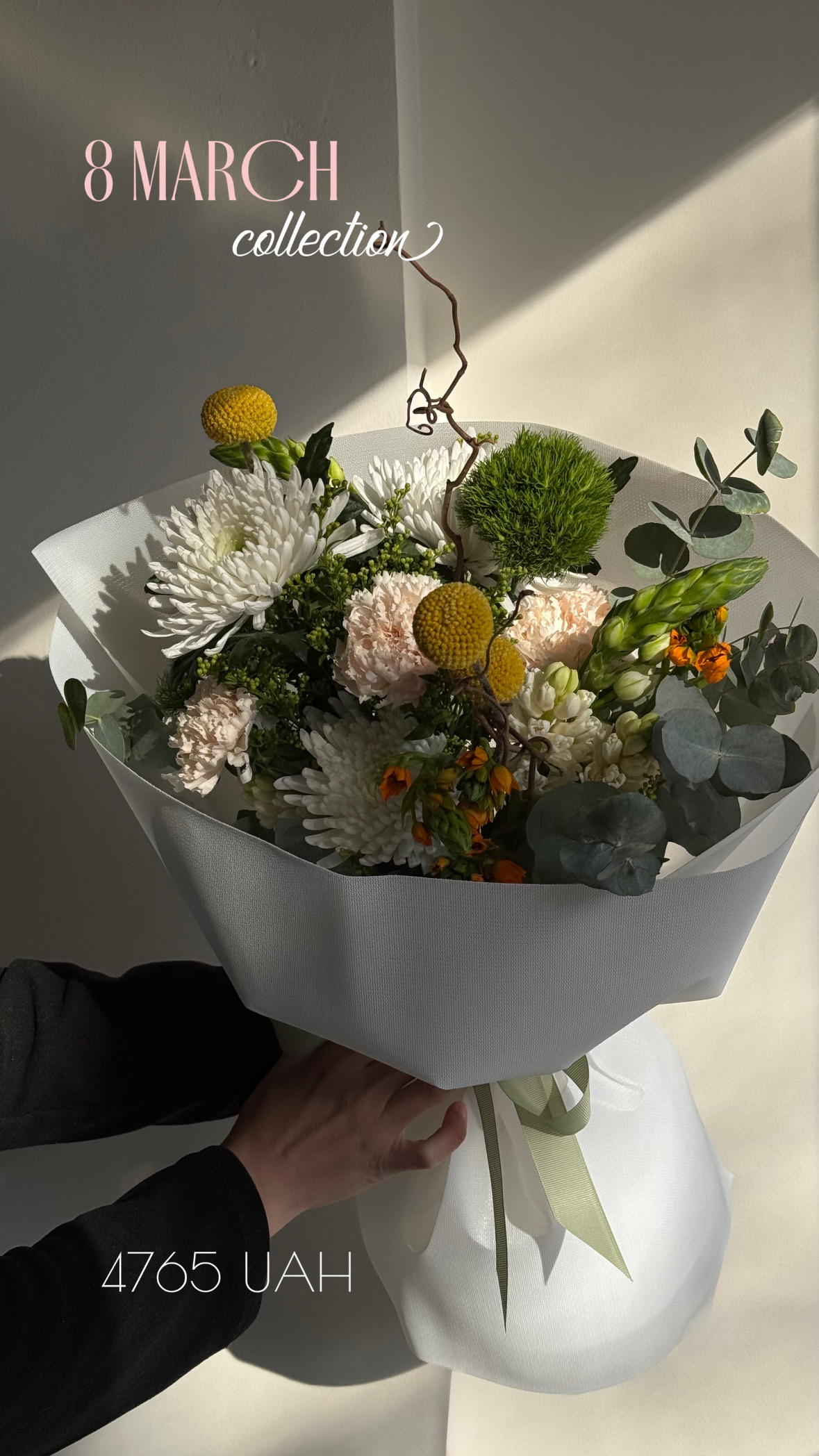 Ми створюємо унікальні букети з сезонних і екзотичних квітів під ваш привід. Букет може відрізнятися від фото, адже щотижня ми формуємо нові поєднання кольорів. У сезон використовуємо українські квіти.