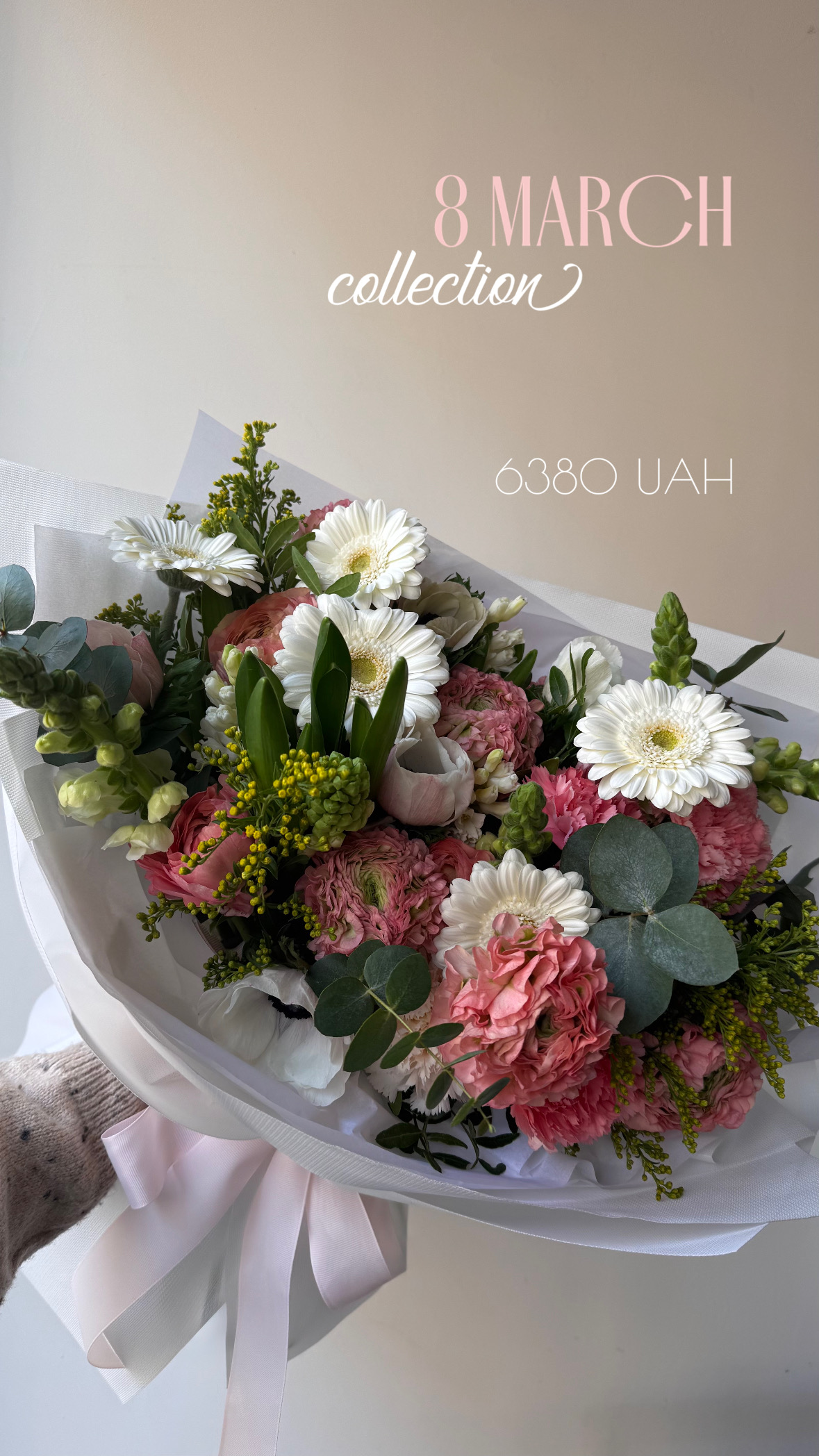 Ми створюємо унікальні букети з сезонних і екзотичних квітів під ваш привід. Букет може відрізнятися від фото, адже щотижня ми формуємо нові поєднання кольорів. У сезон використовуємо українські квіти.